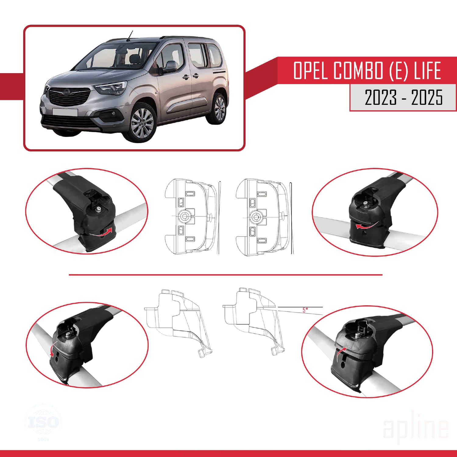 Compatible avec Opel Combo E Life 2023-2025 ACE-2 Barres de Toit Railing Porte-Bagages de Voiture Gris Aluminium 2 Barres
