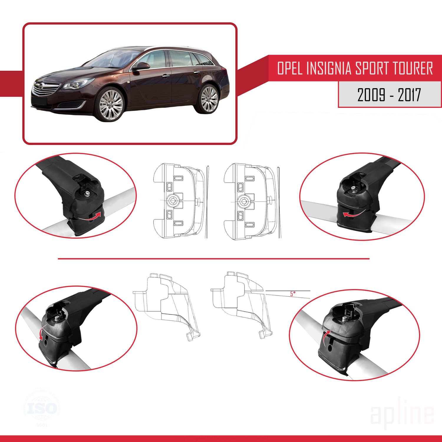 Compatible avec Opel Insignia (G09) ST 2009-2017 ACE-2 Barres de Toit Railing Porte-Bagages de Voiture Noir Aluminium 2 Barres