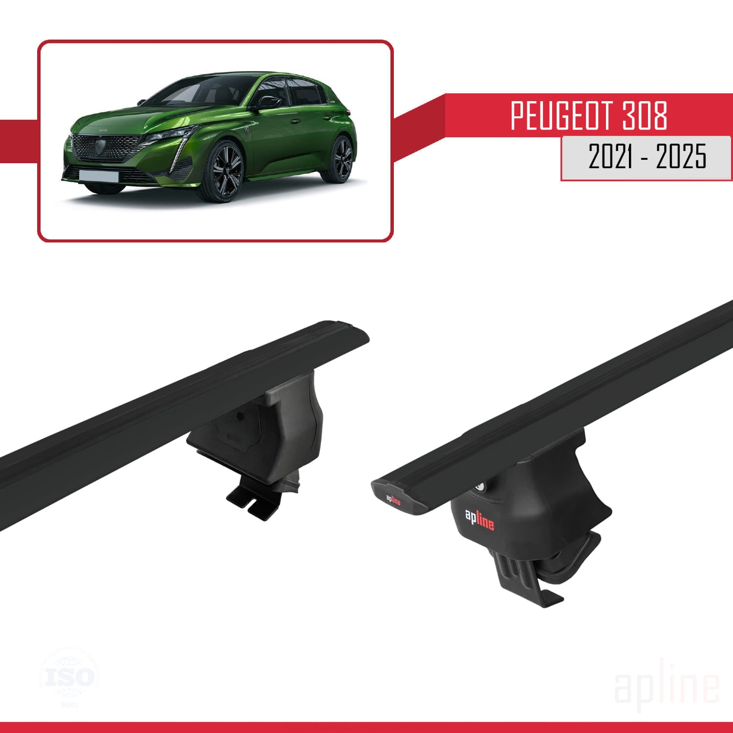 Compatible avec Peugeot 308 III (P5) 2021-2025 ACE-4 Barres de Toit Railing Porte-Bagages de Voiture Noir Aluminium 2 Barres