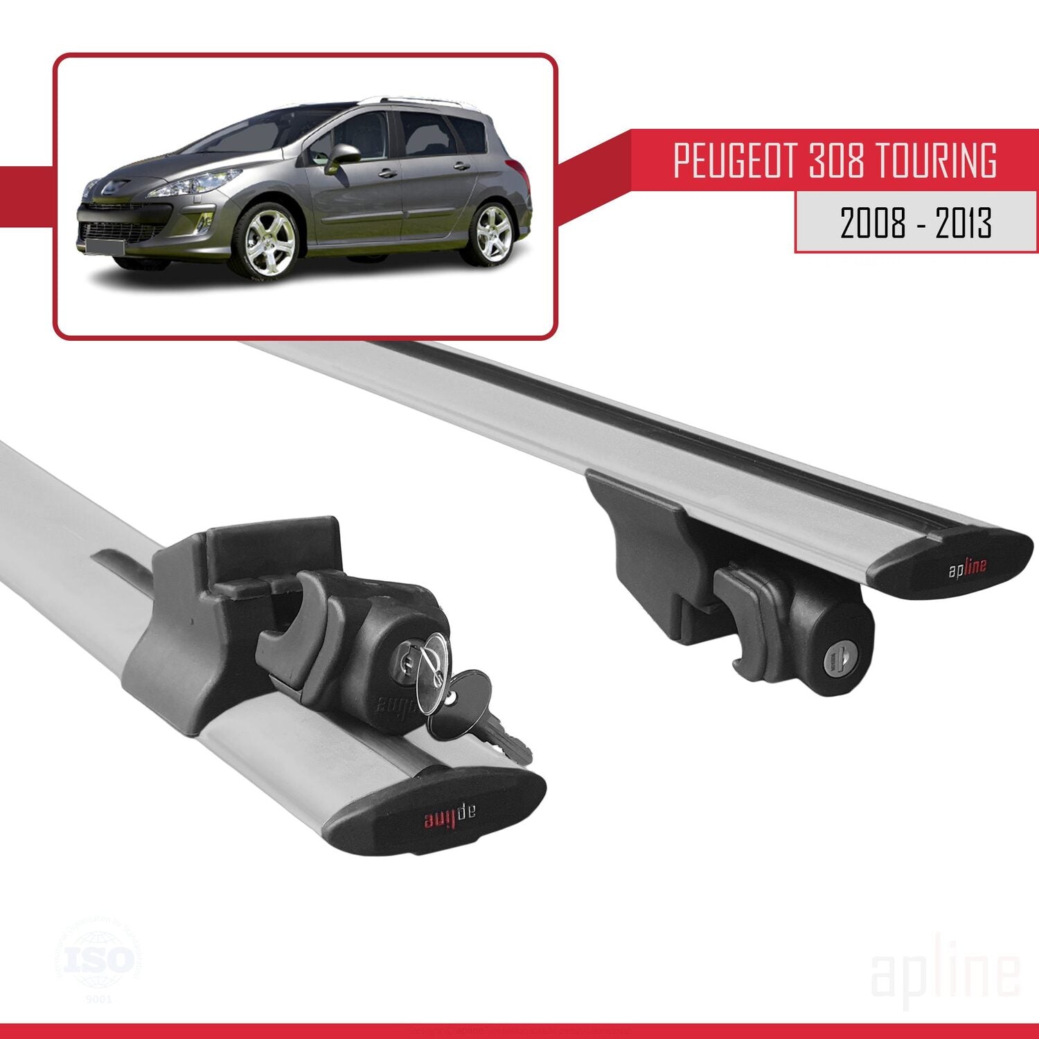Compatible avec Peugeot 308 (T7) Break 2008-2013 HOOK Model Barres de Toit Railing Porte-Bagages de Voiture Gris Aluminium 2 Barres