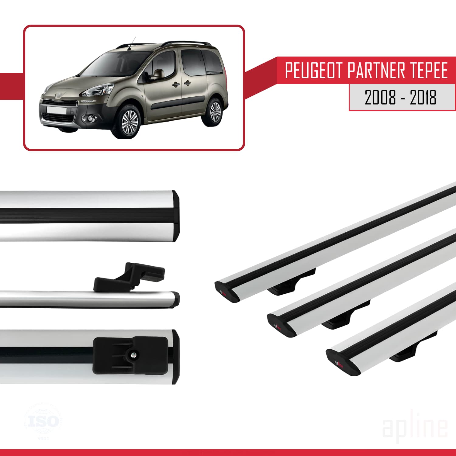 Compatible avec Peugeot Partner 2 Tepee 2008-2018 BASIC Model Barres de Toit Railing Porte-Bagages de Voiture Gris Aluminium 3 Barres