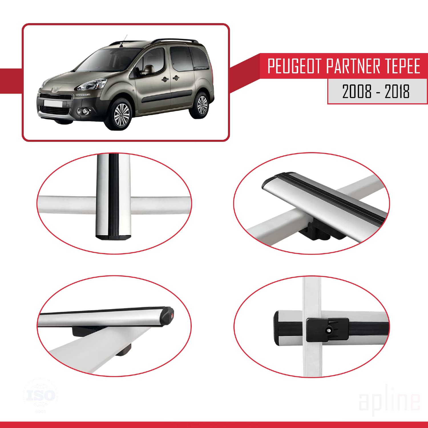 Compatible avec Peugeot Partner 2 Tepee 2008-2018 BASIC Model Barres de Toit Railing Porte-Bagages de Voiture Gris Aluminium 4 Barres