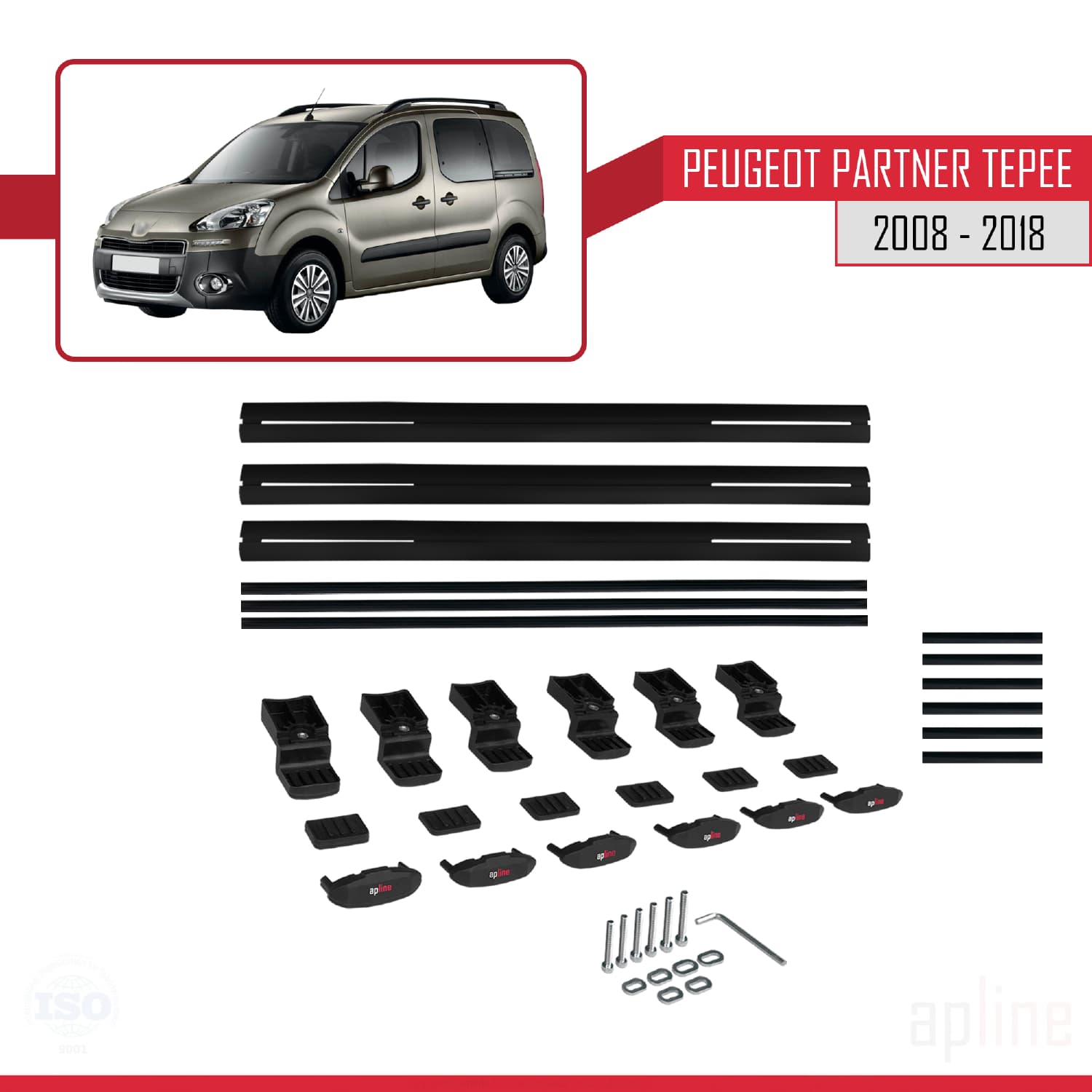 Compatible avec Peugeot Partner 2 Tepee 2008-2018 BASIC Model Barres de Toit Railing Porte-Bagages de Voiture Noir Aluminium 3 Barres