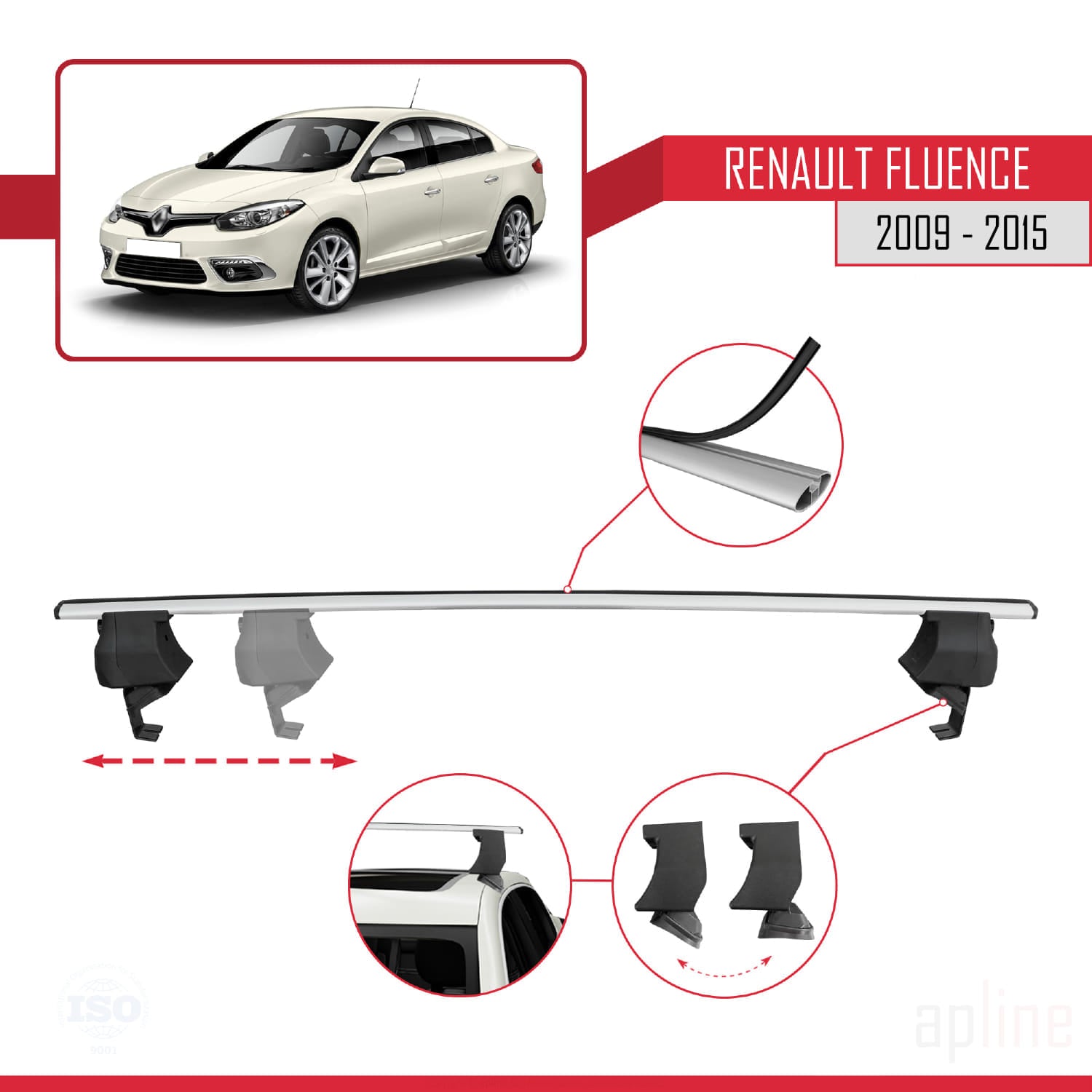 Compatible avec Renault Fluence 2009-2015 ACE-4 Barres de Toit Railing Porte-Bagages de Voiture Gris Aluminium 2 Barres