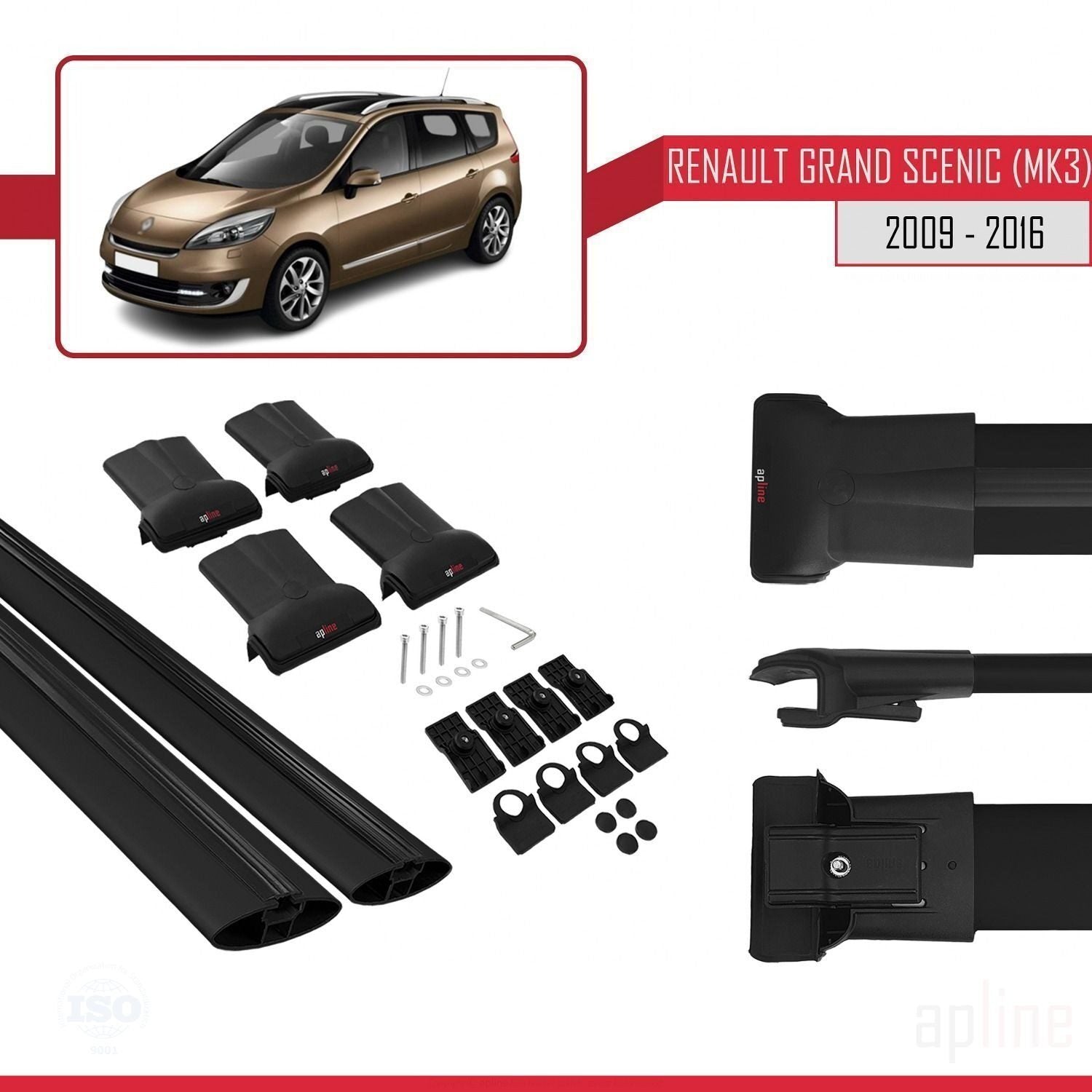 Compatible avec Renault Grand Scenic 3 2009-2016 FLY Model Barres de Toit Railing Porte-Bagages de Voiture Noir Aluminium 2 Barres