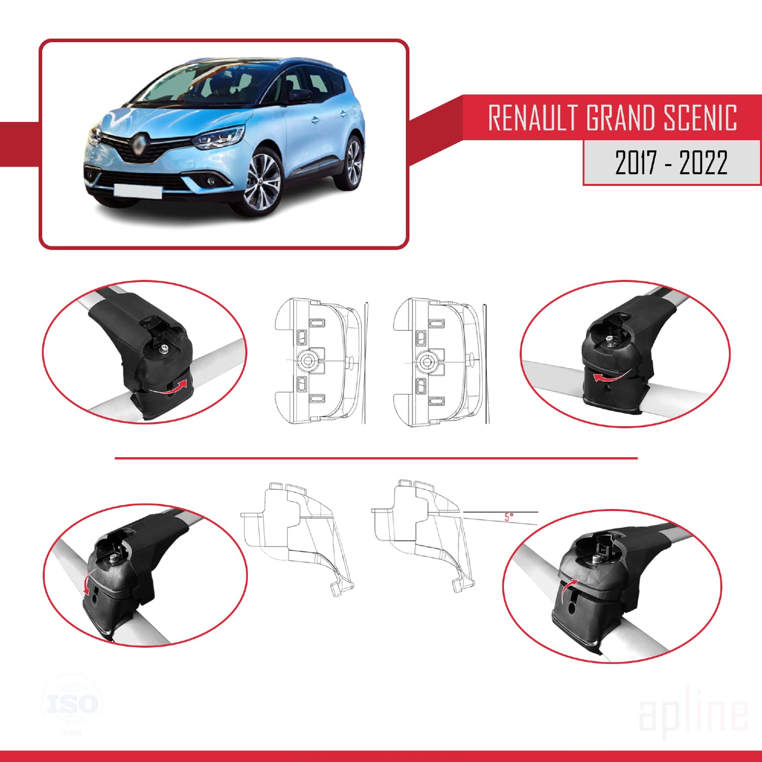 Compatible avec Renault Grand Scenic 4 2017-2022 ACE-2 Barres de Toit Railing Porte-Bagages de Voiture Gris Aluminium 2 Barres