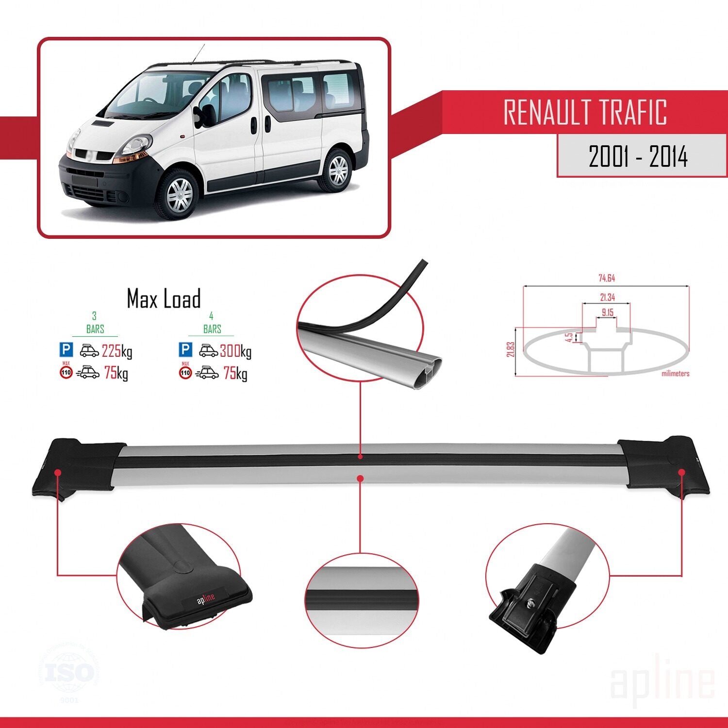 Il est utilisé pour transporter des charges sur votre véhicule. Il est nécessaire pour l'assemblage du porte-vélos, du porte-skis, du coffre de toit, etc. Ce produit se monte sur les barres de toit du véhicule. Ce produit ne peut pas être utilisé dans les véhicules sans barres de toit. Il est compatible avec les modèles présentant un espace entre le toit du véhicule et les barres de toit.