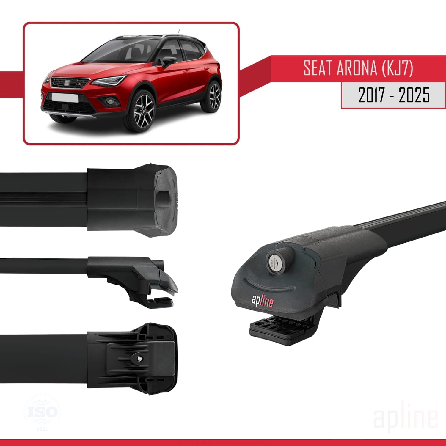 Compatible avec Seat Arona (KJ7) 2017-2025 ACE-1 Barres de Toit Railing Porte-Bagages de Voiture Noir Aluminium 2 Barres