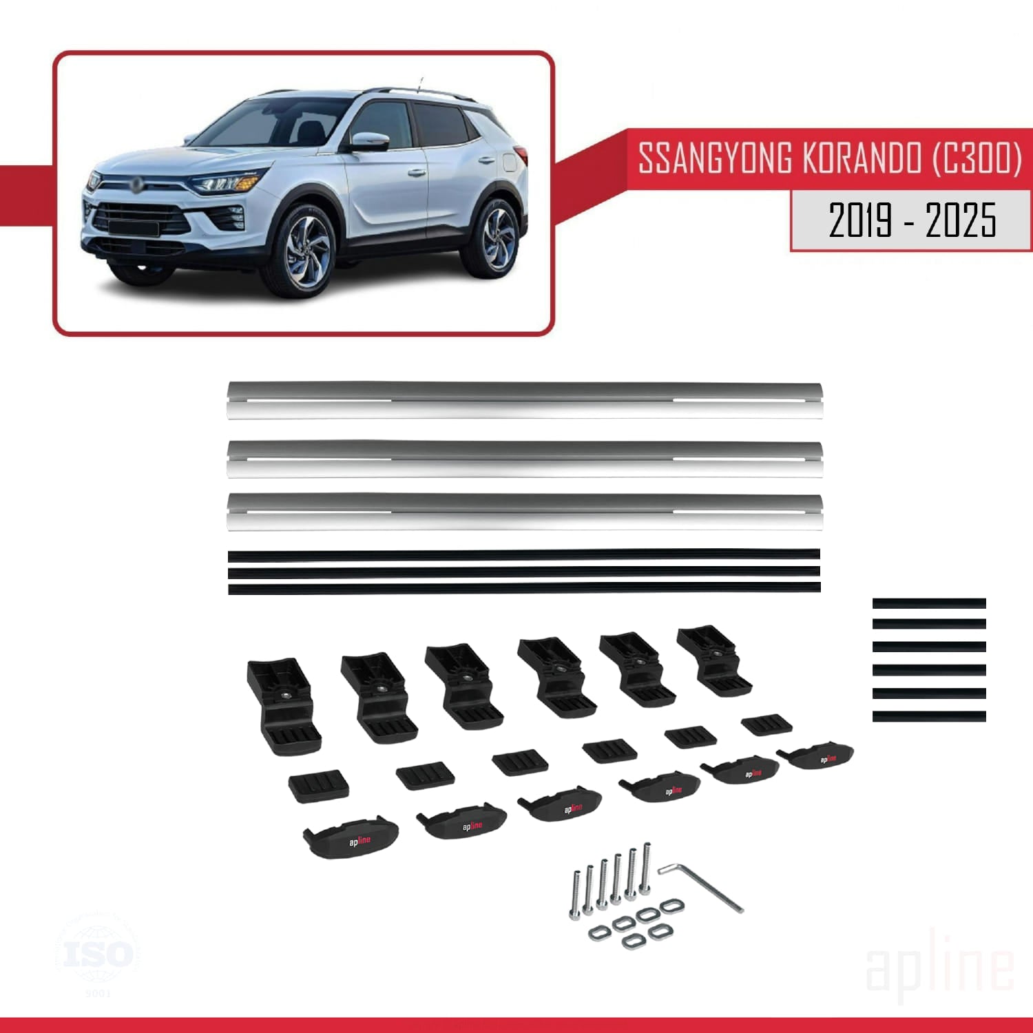 Compatible avec Ssangyong Korando 4 (C300) 2019-2025 BASIC Model Barres de Toit Railing Porte-Bagages de Voiture Gris Aluminium 3 Barres