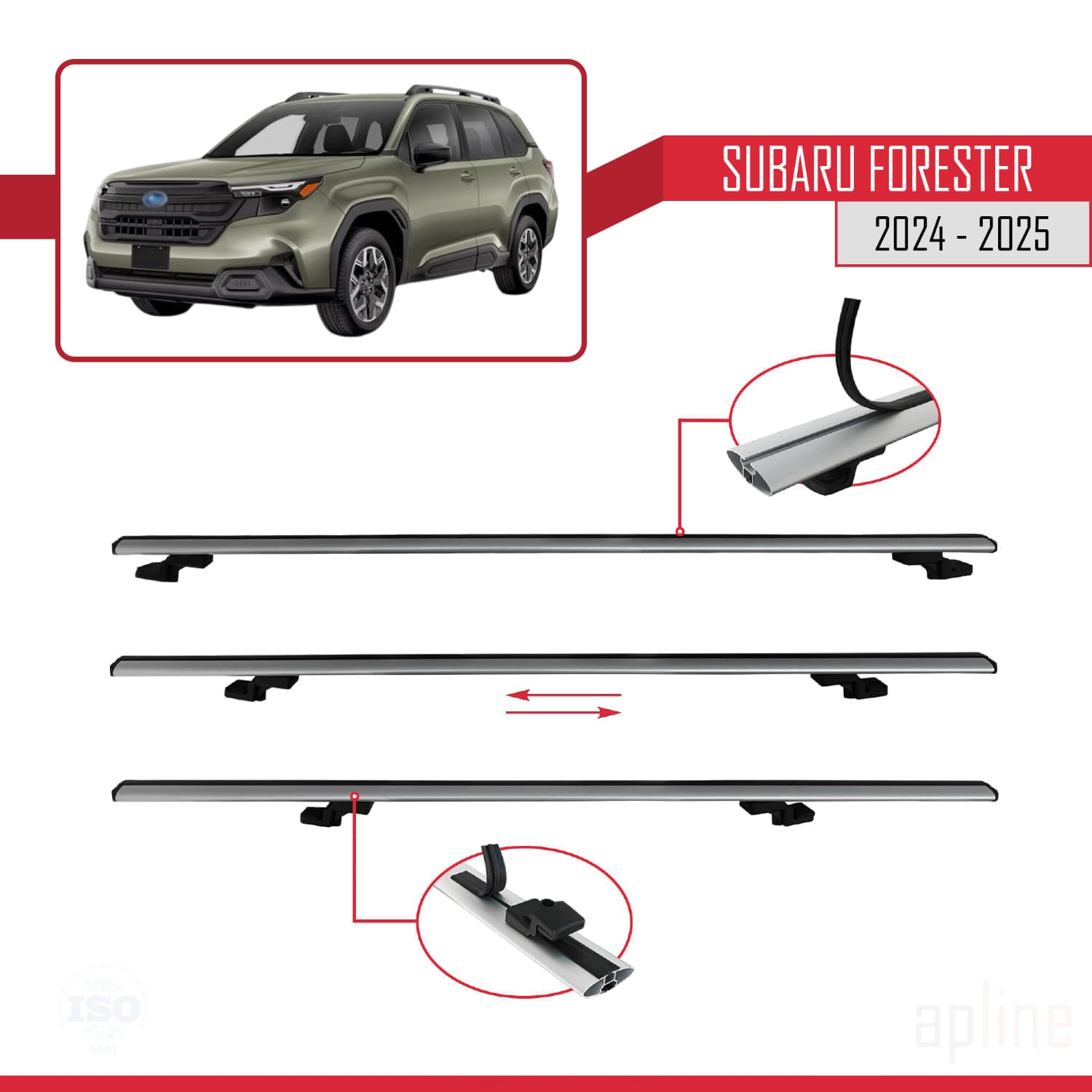 Compatible avec Subaru Forester 2024-2025 BASIC Model Barres de Toit Relevé (Raised Roof) Railing Porte-Bagages de Voiture Gris Aluminium 3 Barres