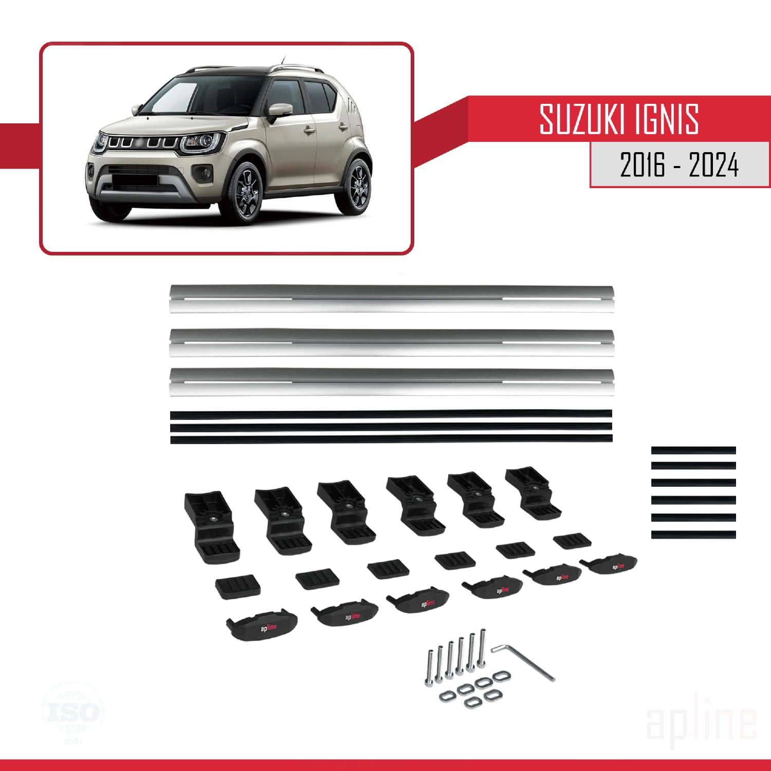 Compatible avec Suzuki Ignis 2016-2024 BASIC Model Barres de Toit Railing Porte-Bagages de Voiture Gris Aluminium 3 Barres