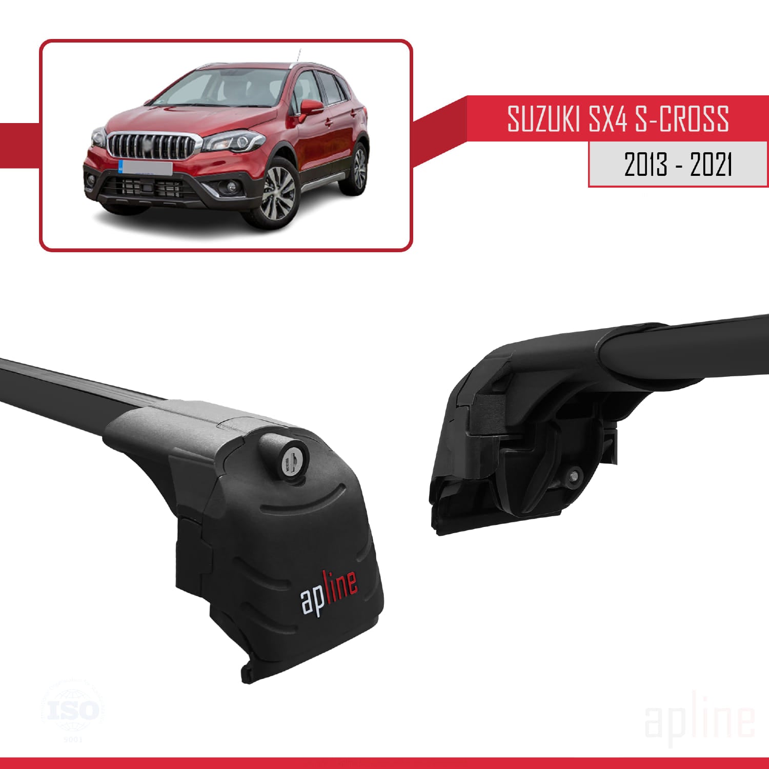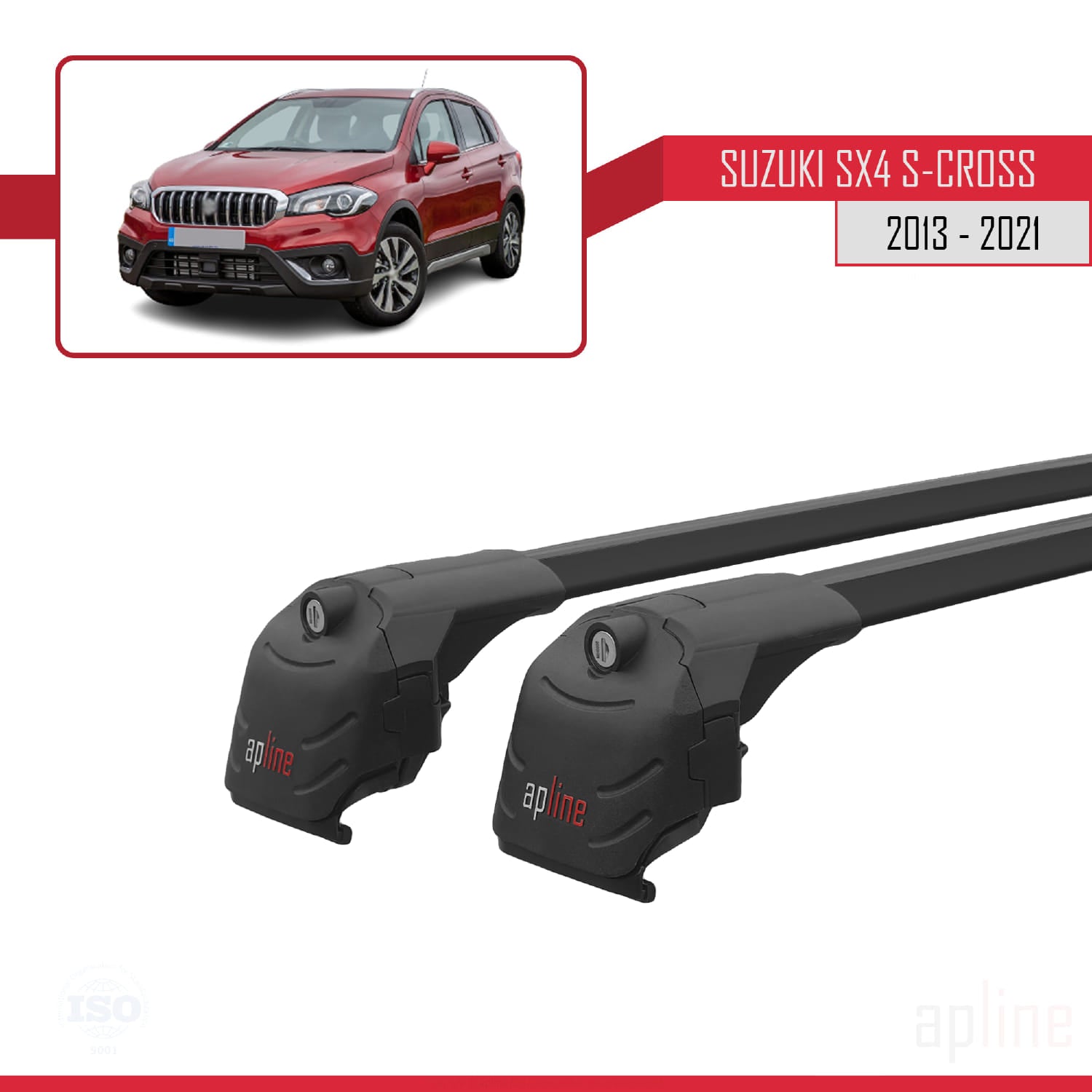 Compatible avec Suzuki SX4 S-Cross 3 (JYB) 2013-2021 ACE-2 Barres de Toit Railing Porte-Bagages de Voiture Noir Aluminium 2 Barres