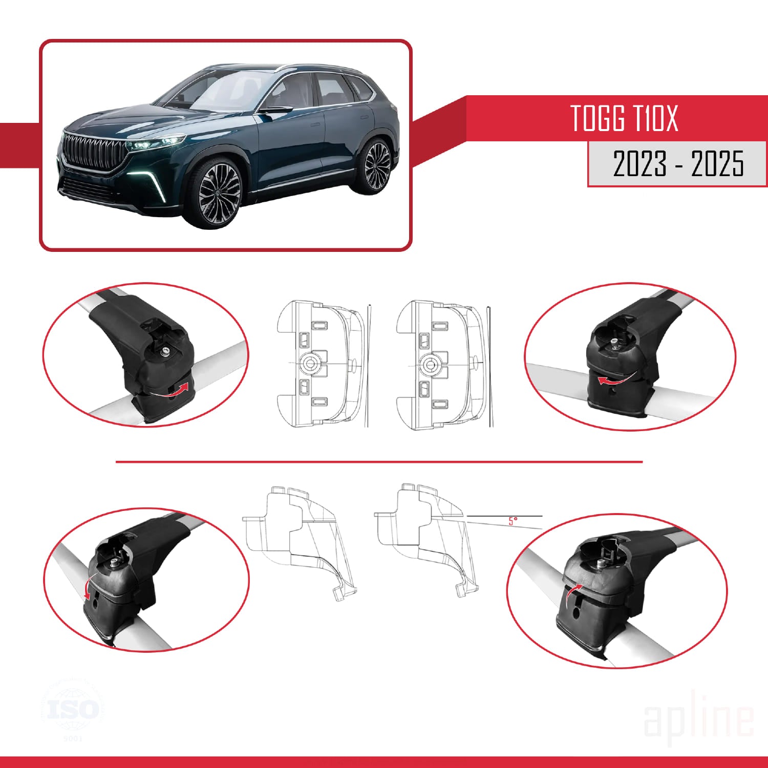 Compatible avec Togg T10X 2023-2025 ACE-2 Barres de Toit Railing Porte-Bagages de Voiture Gris Aluminium 2 Barres