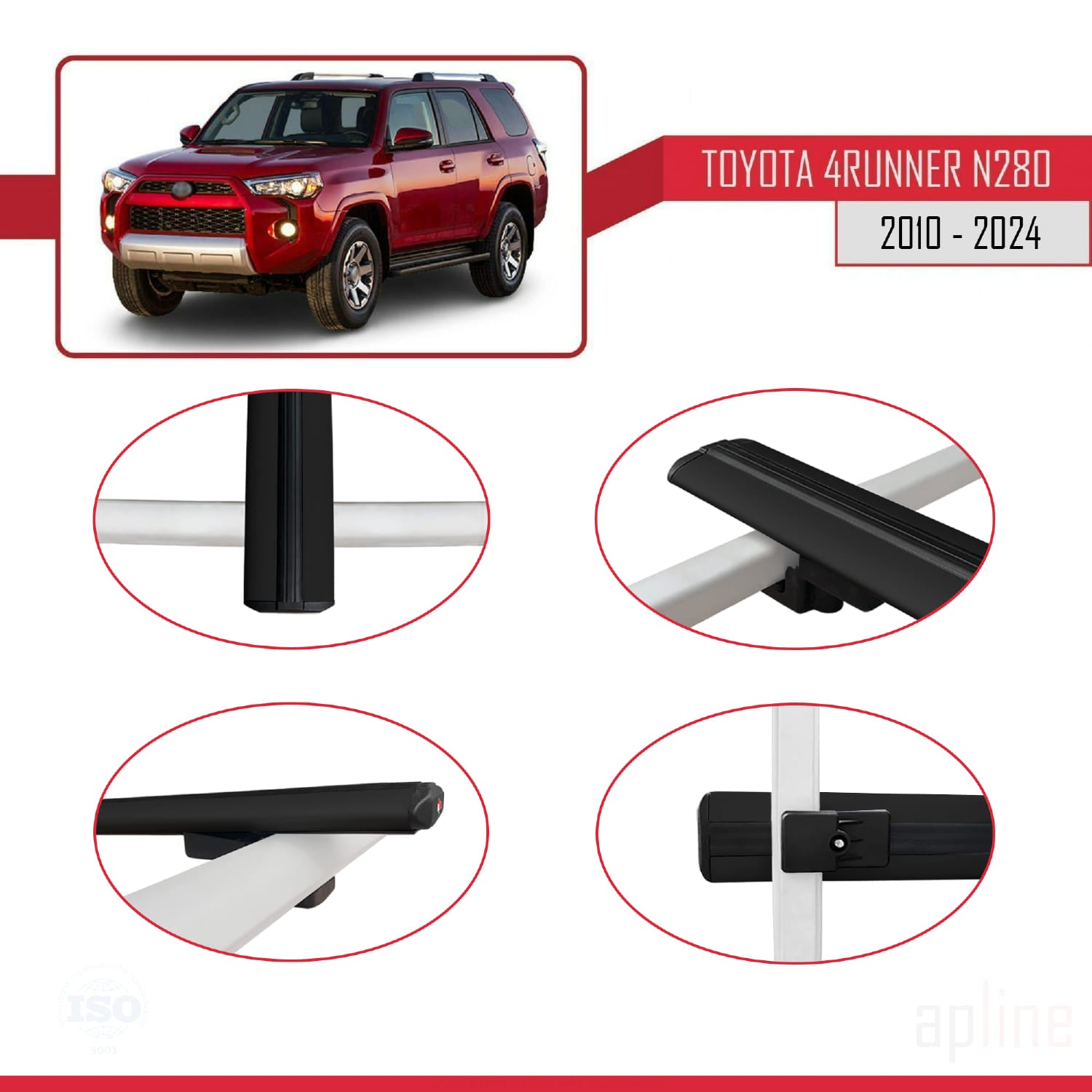 Compatible avec Toyota 4Runner (N280) 2010-2024 BASIC Model Barres de Toit Railing Porte-Bagages de Voiture Noir Aluminium 3 Barres