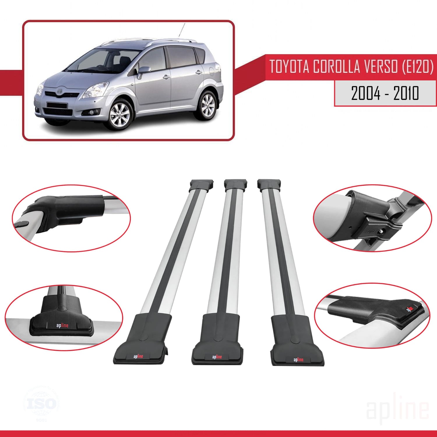 Compatible avec Toyota Corolla Verso 2 (AR10) 2004-2010 FLY Model Barres de Toit Railing Porte-Bagages de Voiture Gris Aluminium 3 Barres