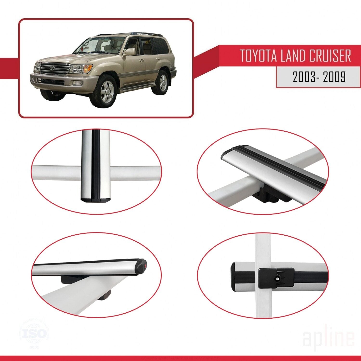 Compatible avec Toyota Land Cruiser (J100) 2003-2007 BASIC Model Barres de Toit Railing Porte-Bagages de Voiture Gris Aluminium 3 Barres