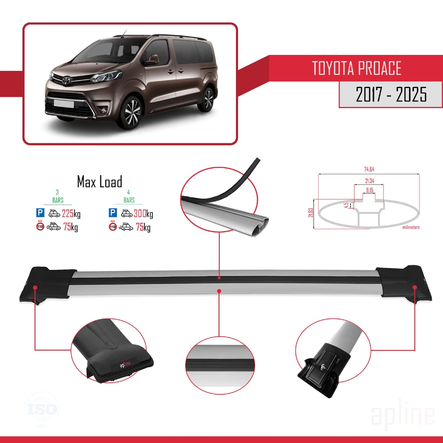 Il est utilisé pour transporter des charges sur votre véhicule. Il est nécessaire pour l'assemblage du porte-vélos, du porte-skis, du coffre de toit, etc. Ce produit se monte sur les barres de toit du véhicule. Ce produit ne peut pas être utilisé dans les véhicules sans barres de toit. Il est compatible avec les modèles présentant un espace entre le toit du véhicule et les barres de toit.