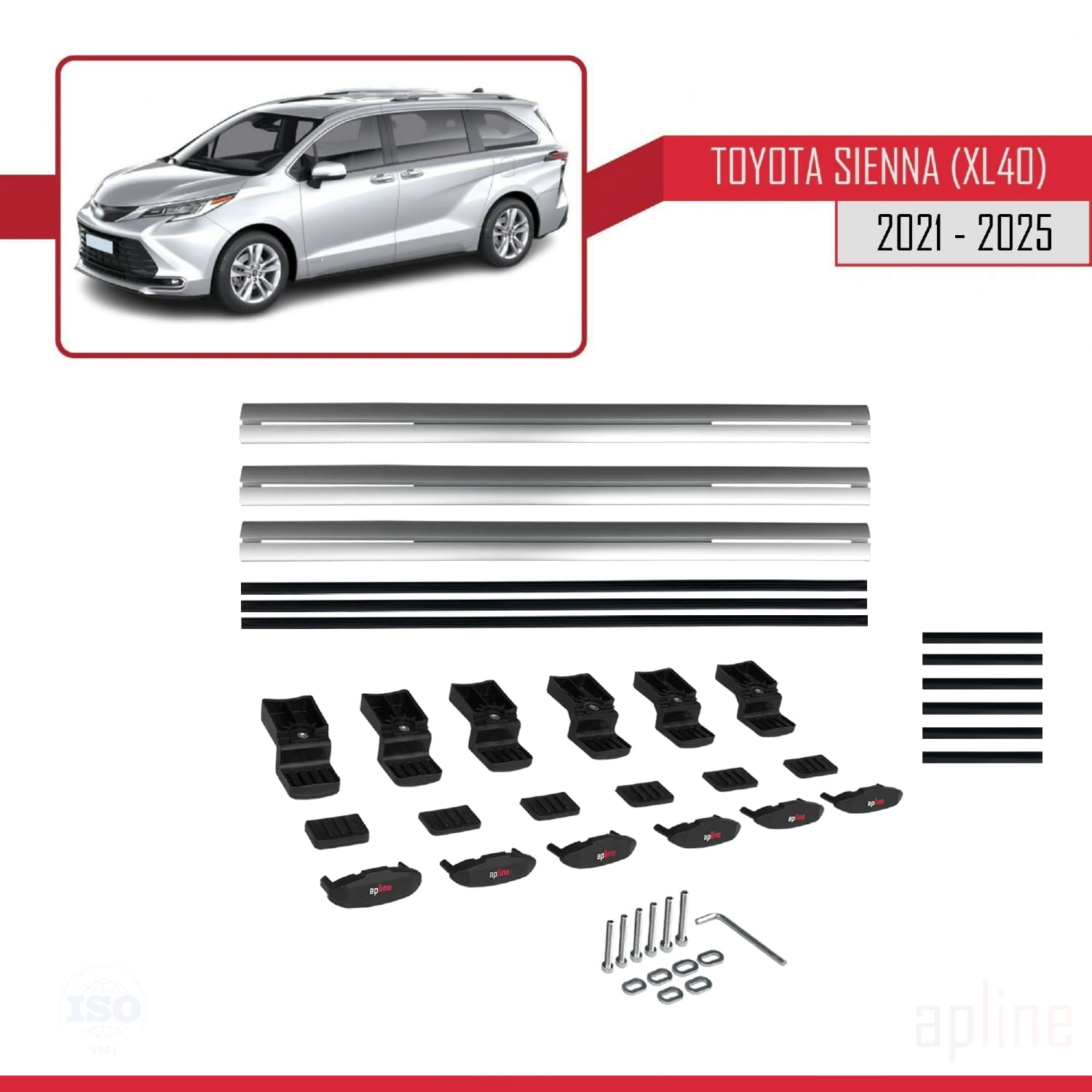 Compatible avec Toyota Sienna 4 (XL40) 2021-2025 BASIC Model Barres de Toit Railing Porte-Bagages de Voiture Gris Aluminium 3 Barres