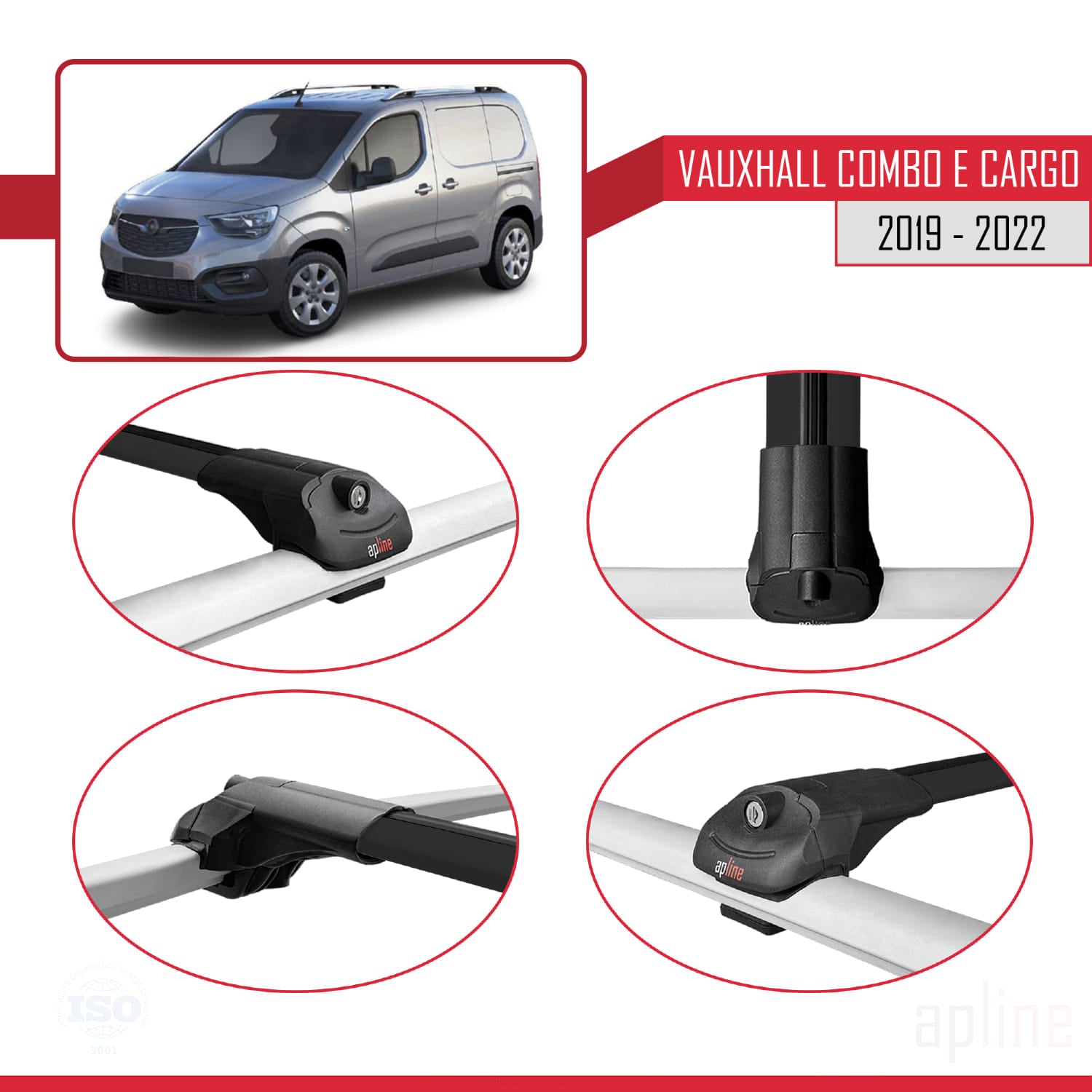 Compatible avec Vauxhall Combo E Cargo 2019-2022 ACE-1 Barres de Toit Railing Porte-Bagages de Voiture Noir Aluminium 2 Barres