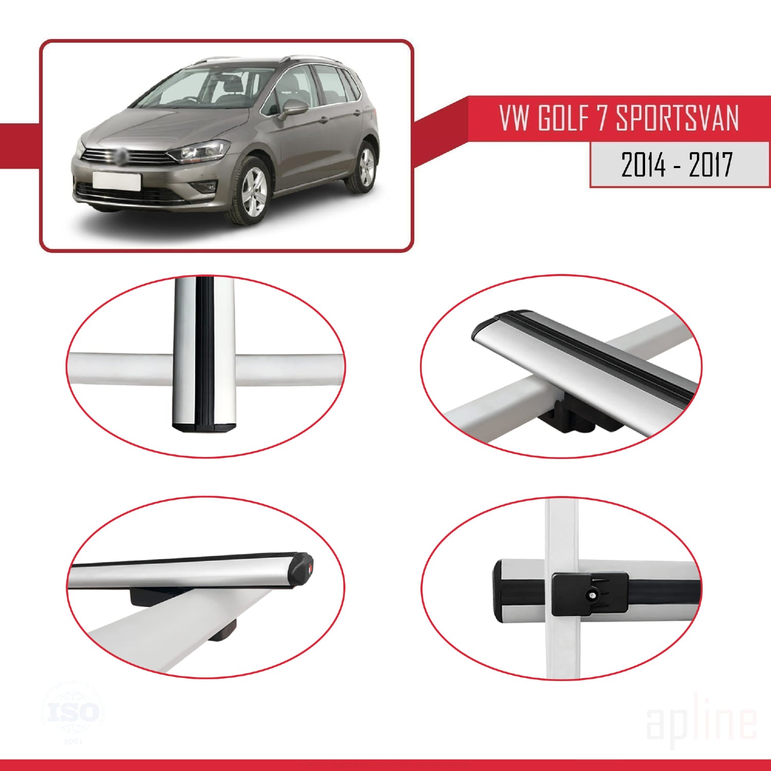 Compatible avec Volkswagen Golf Sportvan 2014-2017 BASIC Model Barres de Toit Railing Porte-Bagages de Voiture Gris Aluminium 3 Barres