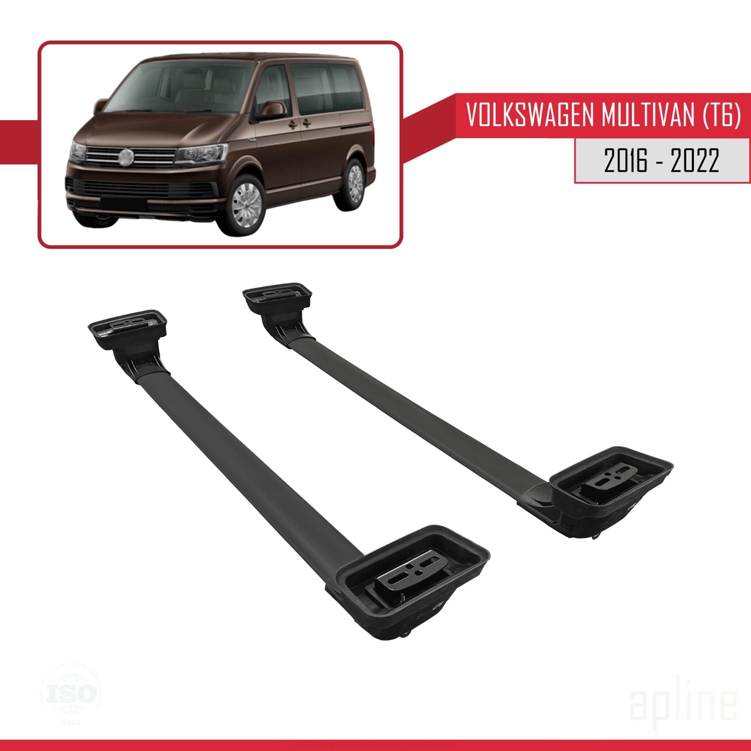 Compatible avec Volkswagen Multivan (T6) 2016-2022 ACE-3 Barres de Toit Railing Porte-Bagages de Voiture Noir Aluminium 2 Barres