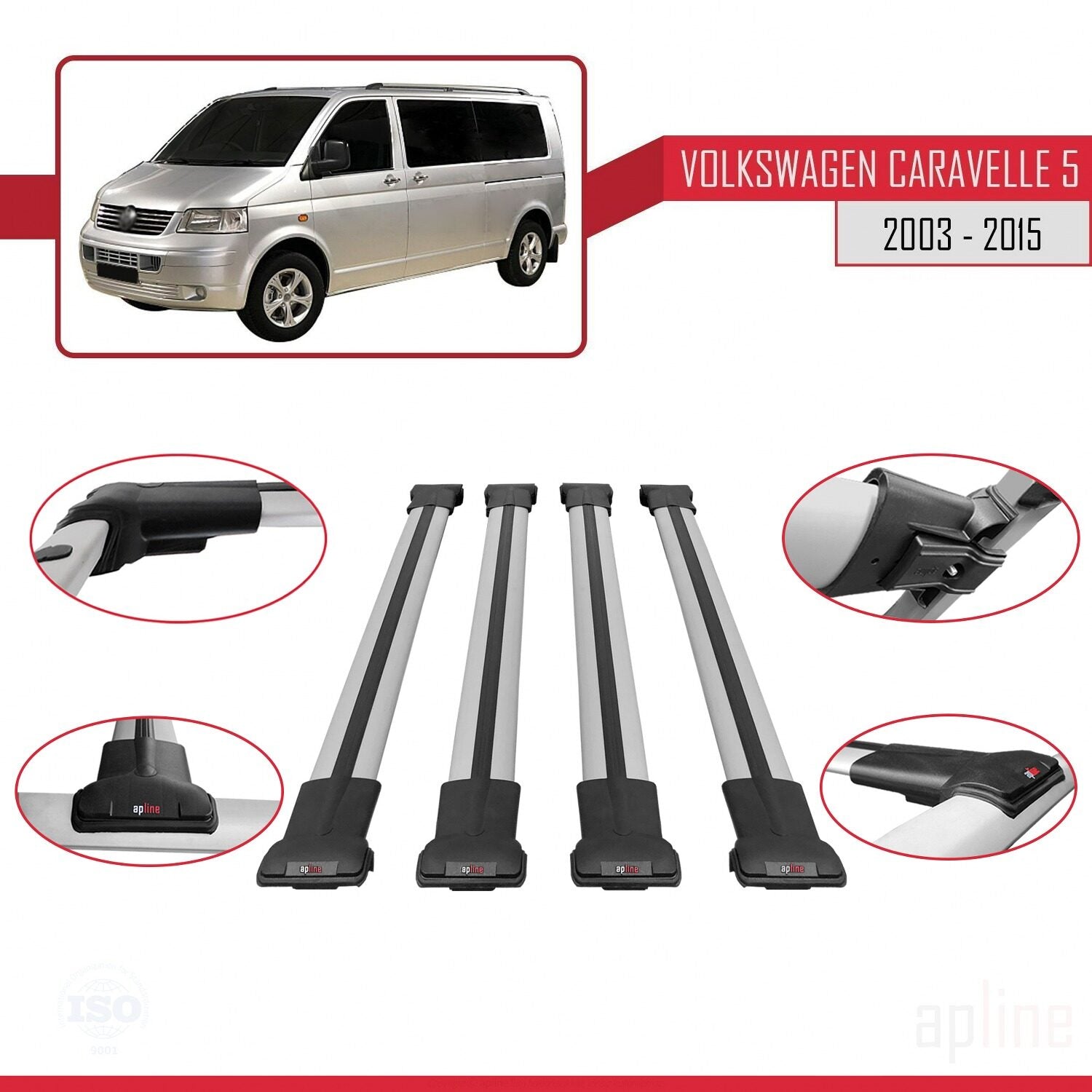Compatible avec Volkswagen T5 Caravelle 2003-2015 FLY Model Barres de Toit Railing Porte-Bagages de Voiture Gris Aluminium 4 Barres