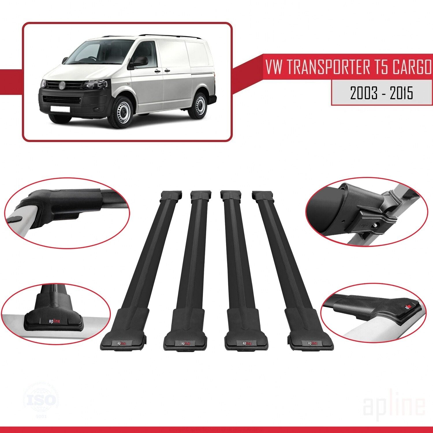 Compatible avec Volkswagen T5 Transporter 2003-2015 FLY Model Barres de Toit Railing Porte-Bagages de Voiture Noir Aluminium 4 Barres