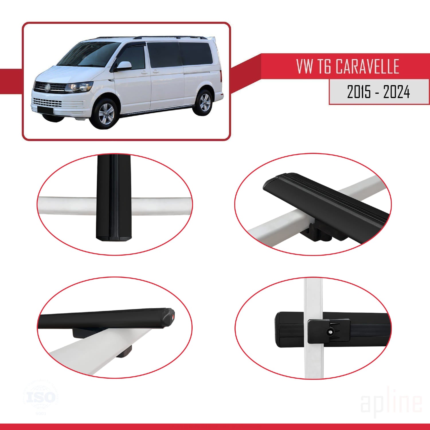 Compatible avec Volkswagen T6 Caravelle 2015-2024 BASIC Model Barres de Toit Railing Porte-Bagages de Voiture Noir Aluminium 2 Barres