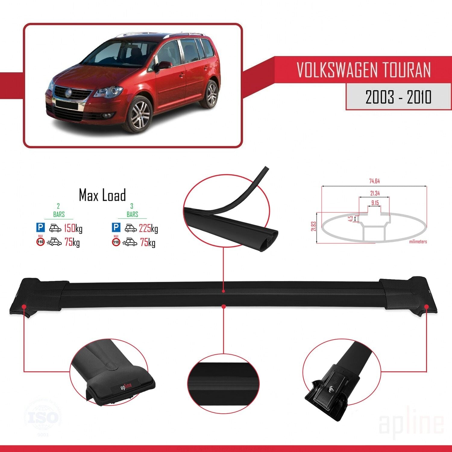 Il est utilisé pour transporter des charges sur votre véhicule. Il est nécessaire pour l'installation de porte-vélos, porte-skis, coffre de toit, etc. Ce produit est monté sur les barres de toit du véhicule. Ce produit ne peut pas être utilisé dans les véhicules dépourvus de barres de toit. Il est compatible avec les modèles qui présentent un espace entre le toit du véhicule et le rail de toit.